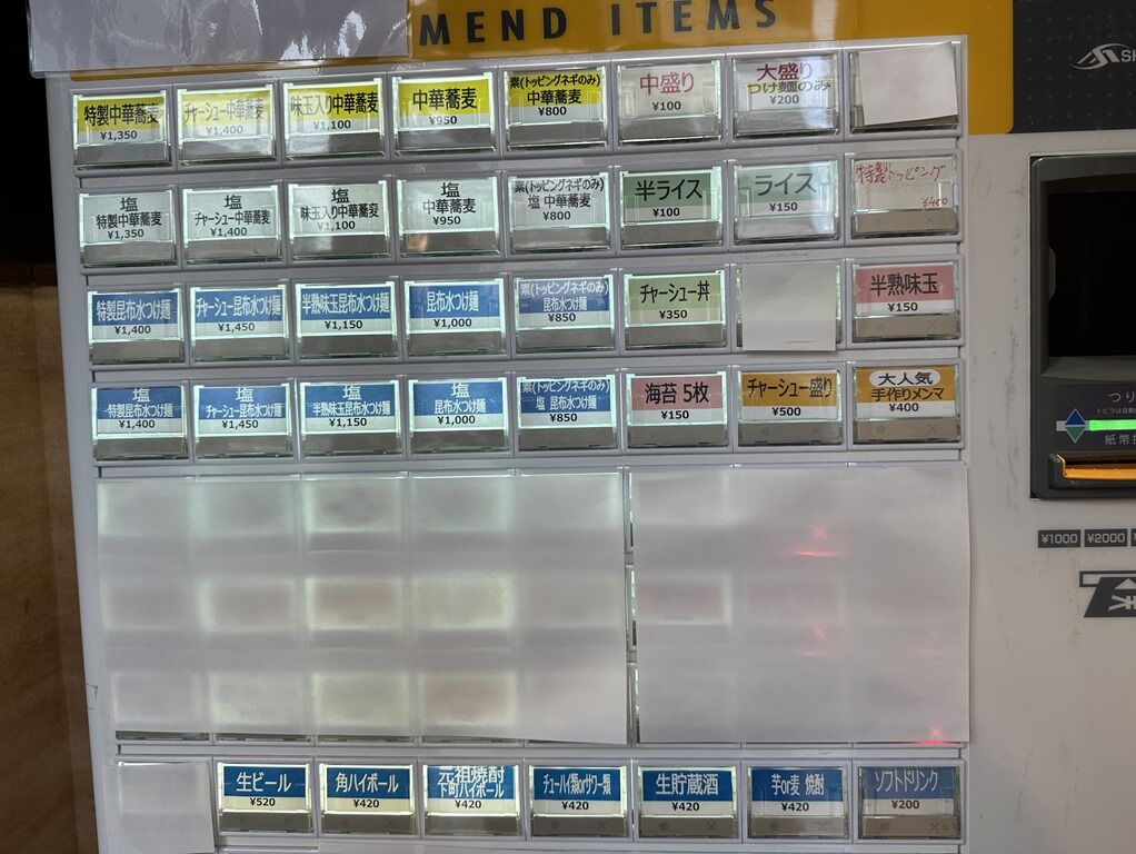 定刻に店主さん自ら暖簾を出してオープン。入店するとまず券売機で食券購入です。