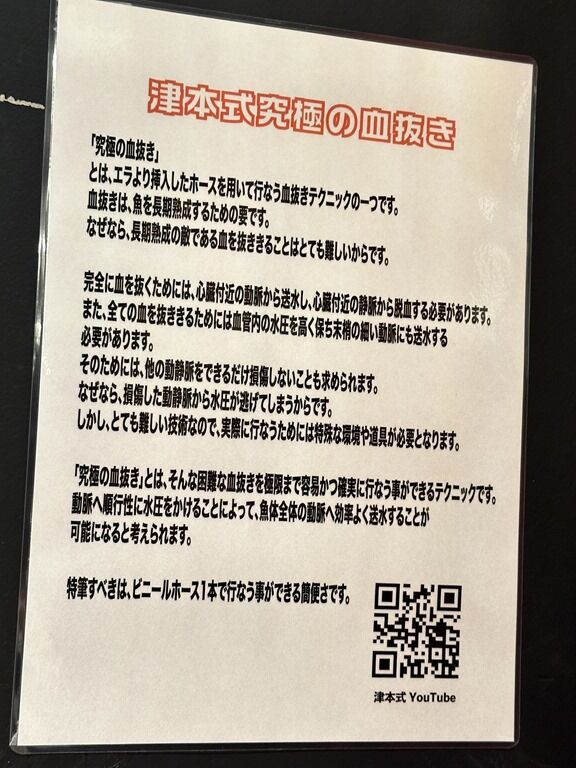 「津本式究極の血抜き」とは、魚を完全に近い状態まで血抜きをすることで、魚の腐敗・生臭さを取り除き本来の魚の旨味を引き出す仕立てのこと。テレビニュースの特集で見たことがあります。