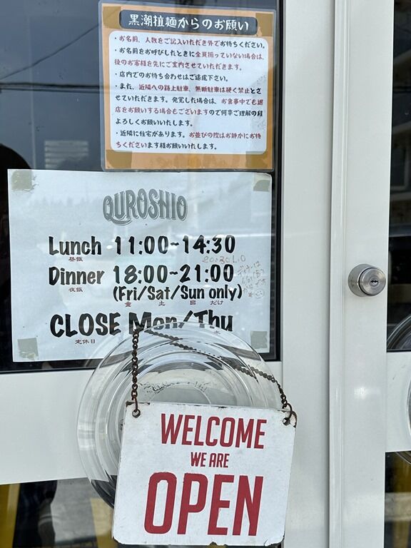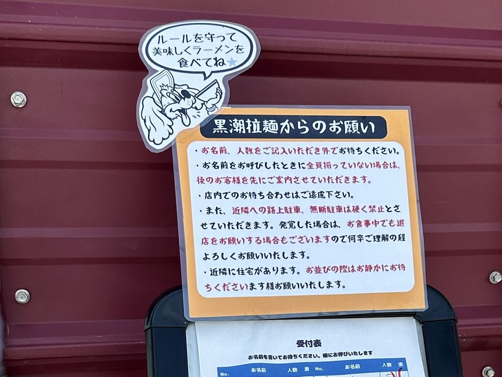 2024年6月6日大安にオープン。我らが「黒潮拉麺」が、館山市内で念願の海のそばの店舗に移転。だいぶ遅くなりましたが、佐倉「ラーメン 神門」→「九十九里町 なかみち」の後お祝いにこちらへ。