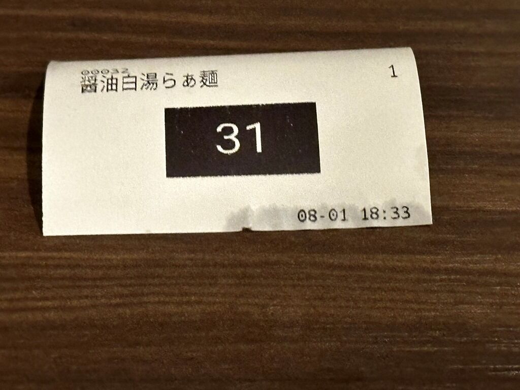 食券購入すると、オーダーが自動的に厨房に飛ぶ仕組み。このため食券回収はありません。食券が番号札になっていて、出来上がると番号で呼ばれて返事すると商品が運ばれてくる仕組み。