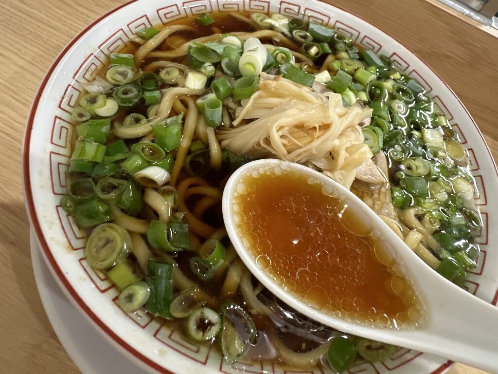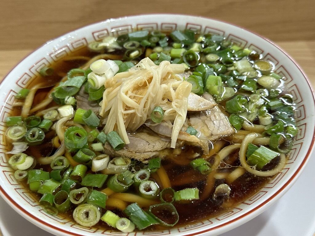 おばあちゃんのラーメンの特徴は、醤油がビシッと効いたたっぷりなみなみ熱々スープに、食べ応えある太麺。チャーシュー、めんま、ねぎみんなどっさりな、最近人気のネオノス系。