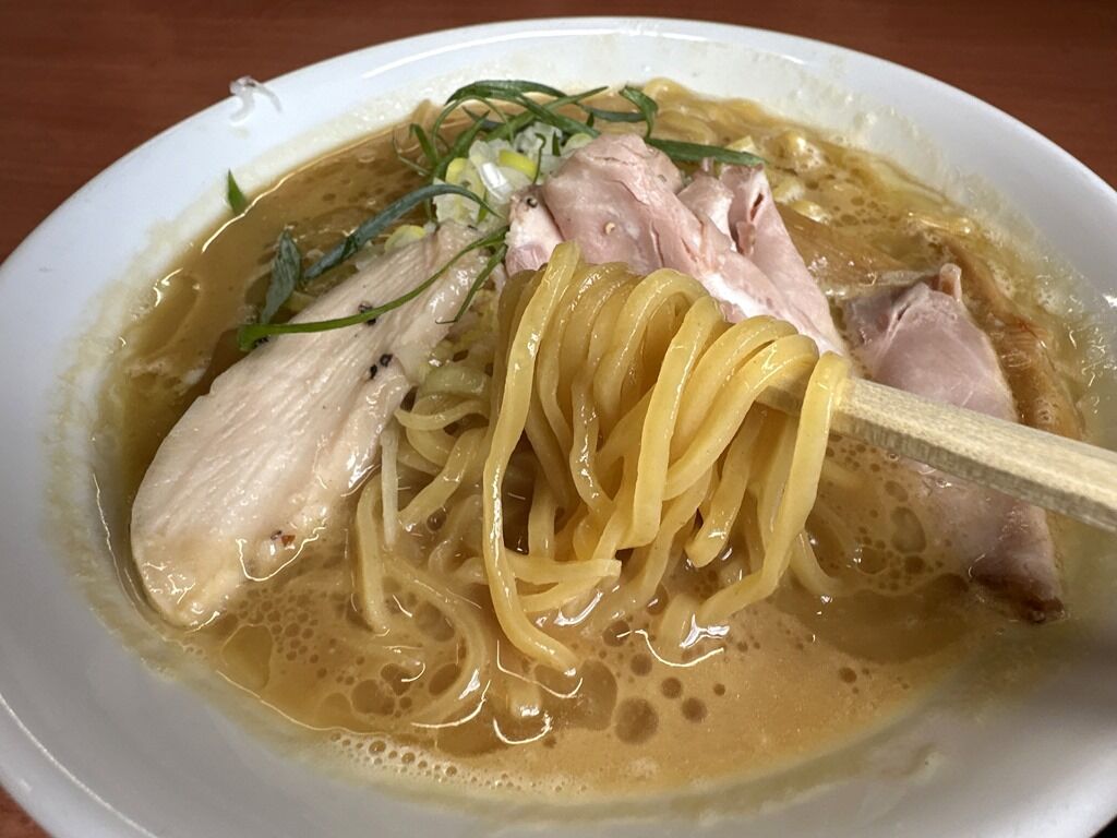 スープは鶏ガラ、もみじ、国産丸鶏を強火で炊いて鶏の旨みを凝縮したもの。クリーミーでとろっと濃厚。鶏ポタでタレが旨いのか、旨みが立っている印象。鶏白湯ラーメン専門店はどうしても似たような味になりがちですが、こちらのスープは特徴的でいいですね。