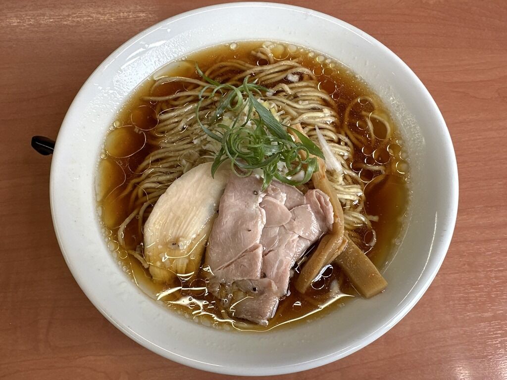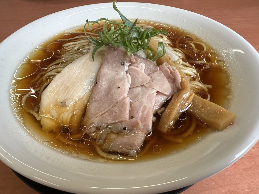 スープはさらさらの清湯醤油味。鶏ガラ、もみじ、国産丸鶏を炊いた透き通った淡麗スープ。あっさりしながら鶏の旨みが詰まっていてとても美味しい!