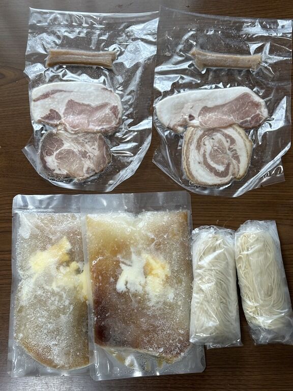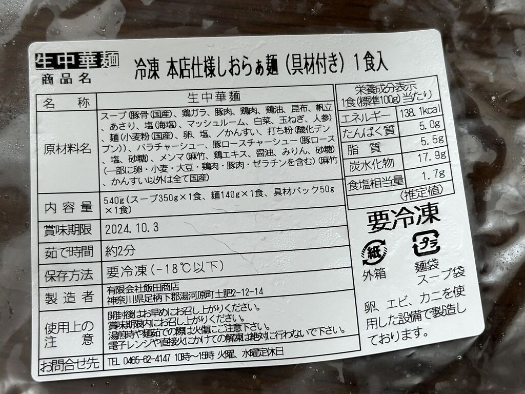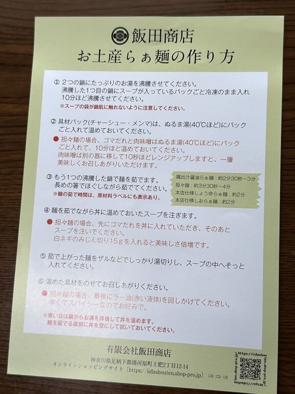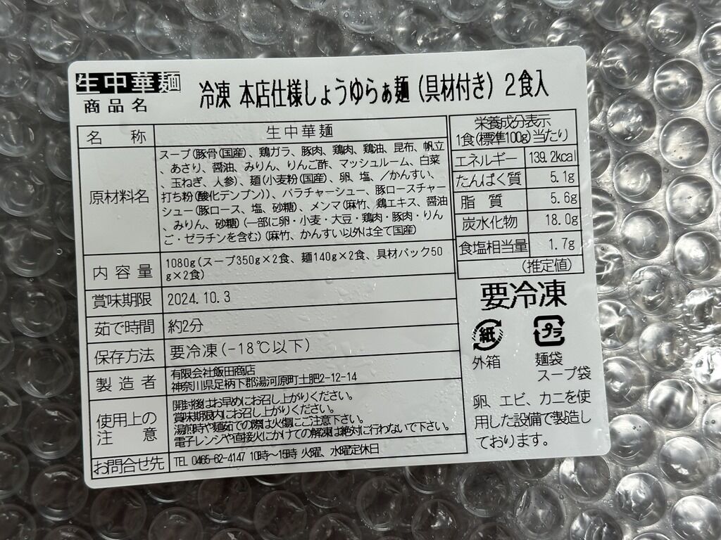 「飯田商店」本店OMAKASEの予約が取れなさ過ぎて、通販してみることに。OMAKASEのお取り寄せで、飯田商店本店仕様しょうゆらぁ麺2食+しおらぁ麺1食(具材パック付き)5300円。