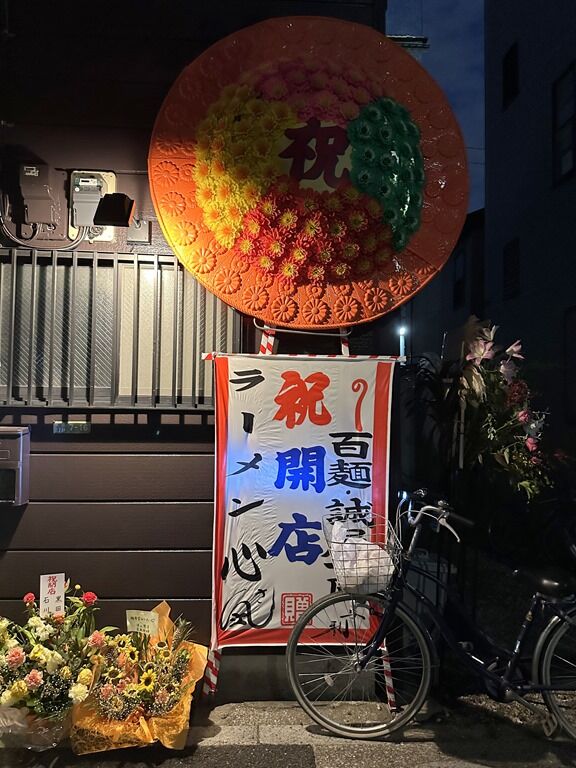BIKERS GARAGE→OISHITEA→功夫屋台と入れ替わった跡地。開店祝花・花輪は、百麺・誠屋、他から。