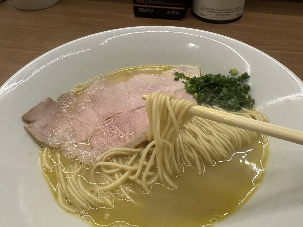 麺は三河屋製麺のストレート中太タイプ。丿貫の鮮魚系といえば低加水パツパツ麺のイメージですが、今回はモチモチ食感。濃密スープにもっちり麺が良く合います。
