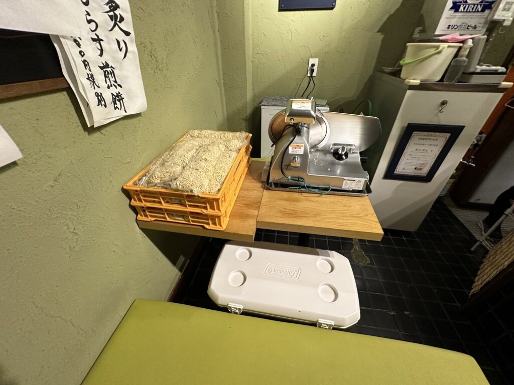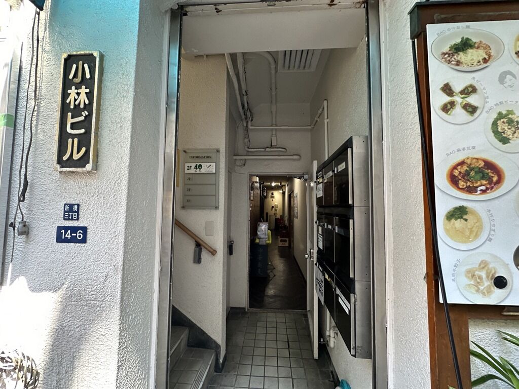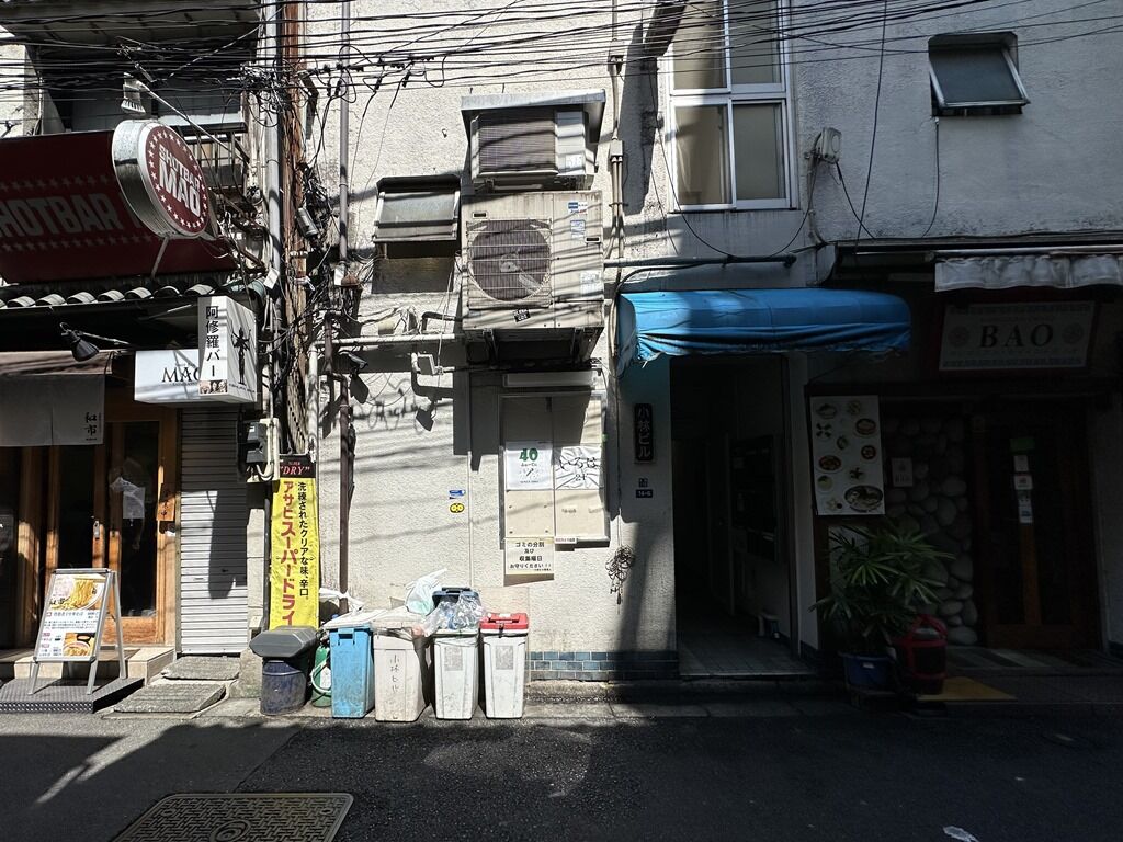 店の場所はJR新橋駅烏森口徒歩約3分。「背脂煮干中華そば 和市」の右隣のビル、青いテントの入口入った先すぐ左。「今ここに」の間借り。