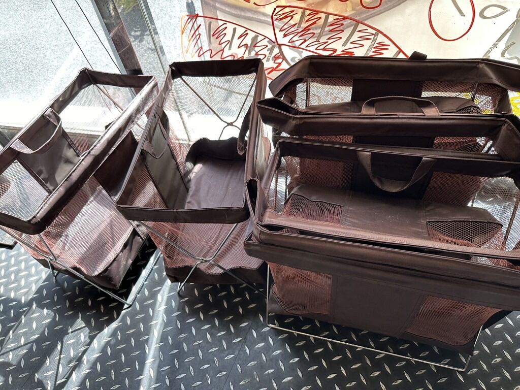 厨房に男性2。もしかしたら弁慶お孫さんのお二人かと。通路脇に荷物かごの用意あり。
