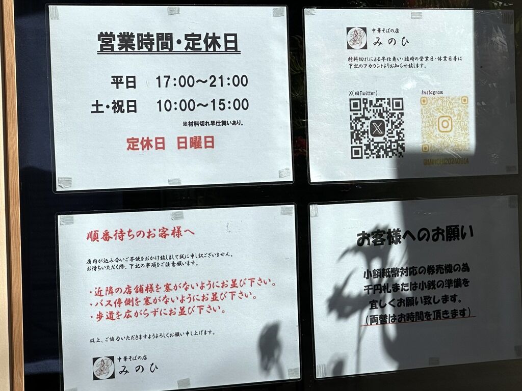 2024年9月14日巳の日、本日オープンの新店「中華そばの店 みのひ」へ。