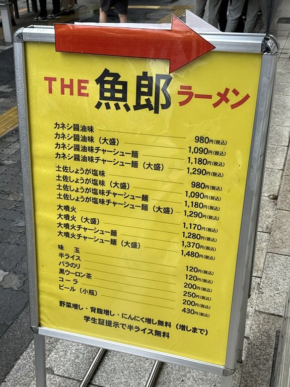 主なメニューは、カネシ醤油味980円、土佐しょうが塩味980円、大噴火1170円、他。