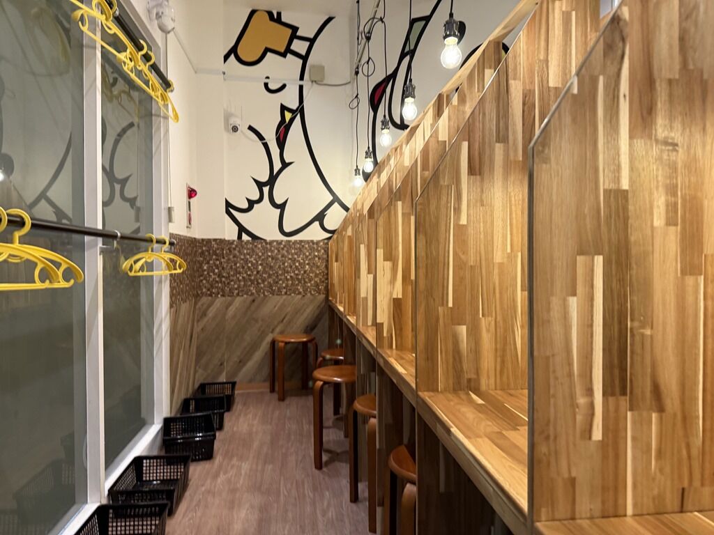 店内は一蘭の味集中カウンターに似た1席ずつ囲われたカウンター9席。一蘭の味集中カウンターは確か特許を取得してますが、大丈夫でしょうか。