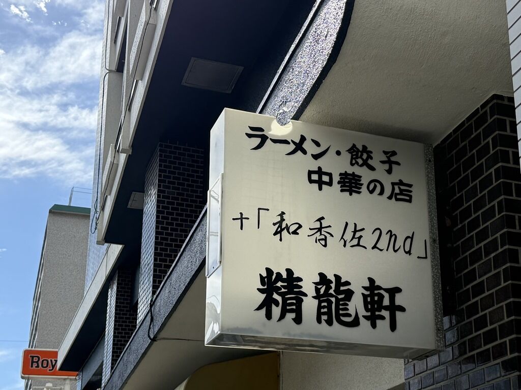 店の場所は上大岡駅東口徒歩約10分。鎌倉街道沿い。「精龍軒」リスペクトのため旧店の屋号をそのまま残して、「和香佐2nd」の店名を足した看板。店舗外観は撮影失敗( ノД`)
