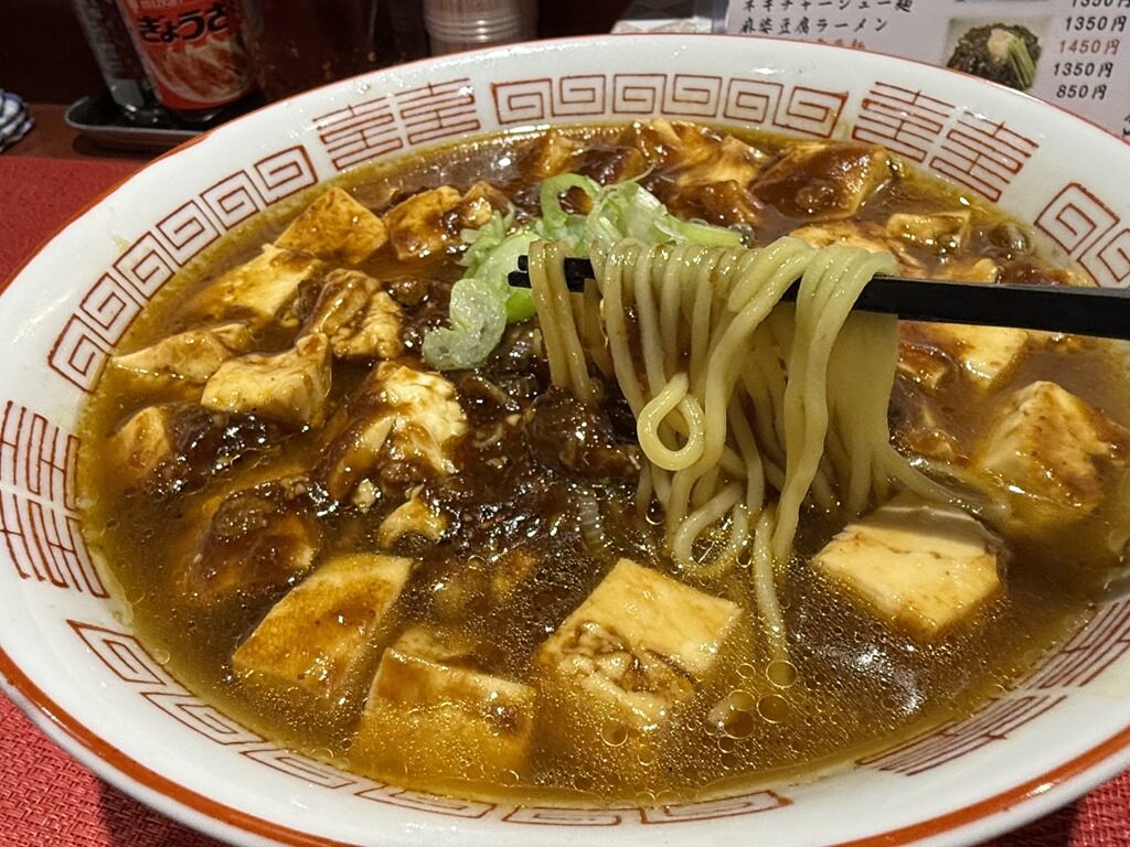 スープはさらさらの清湯醤油味。醤油ラーメンの上に麻婆豆腐を載せる後載せタイプ。醤油ラーメンのスープもしっかりとした出汁の効いたもの。すぐ麻婆が混ざるのでスープ単体の味は分からなくなりますが、単品ラーメンも旨そう。麻婆豆腐は自慢の味というだけあり高級四川料理店にも負けないしっかりとした味わい。麻婆豆腐の量も多く、ラーメンスープよりも麻婆が優勢に。合わさると味濃いめでご飯が進みそう。ボリュームもしっかりあります。本格的な麻婆豆腐が載ったラーメンですごく美味しい!