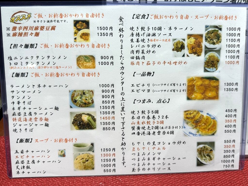 2024年10月7日オープン。伊勢佐木長者町の中華料理店「和香佐(わかさ)」が移転リニューアル。関内でリニューアルオープンした新店が定休日もリニューアルしたらしく土曜日開かずで諦め。2軒めに予定していたこちらへ。