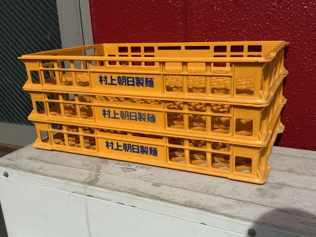 厨房に店主さんワンオペ体制。ゆで麺機のテボ4つフル活用でロット4杯同時進行。