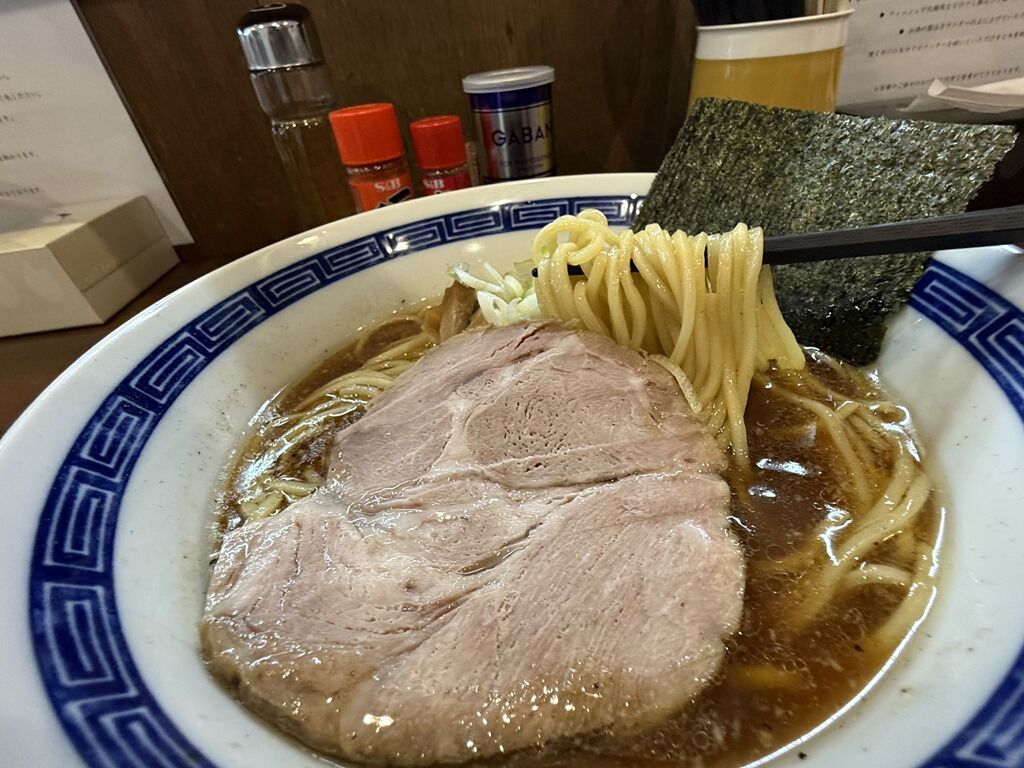 スープはさらりとした豚骨魚介醤油味。ファーストインパクトは、節がズバッと来て強烈な魚介フック。後から豚骨の濃密な旨みが被せてくる感覚。修行店ともべんてんともどことも似ていないオリジナルテイスト。力強く重厚な旨みながら重さは無くスルスルと食べ進められます。新店らしからぬ堂々たる存在感抜群の味わいですごく美味しい!