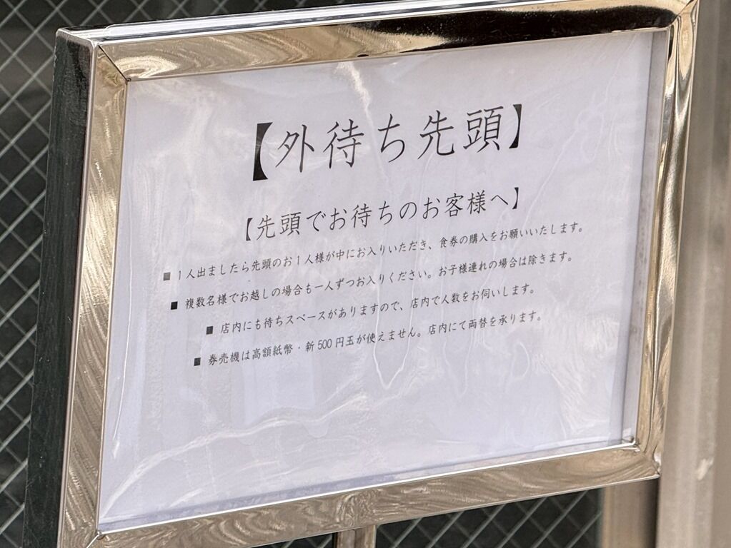 卓上に掲示がありましたが、店内は券売機とラーメンのみ撮影可、以外撮影禁止。このため、以降着丼まで文章のみ。