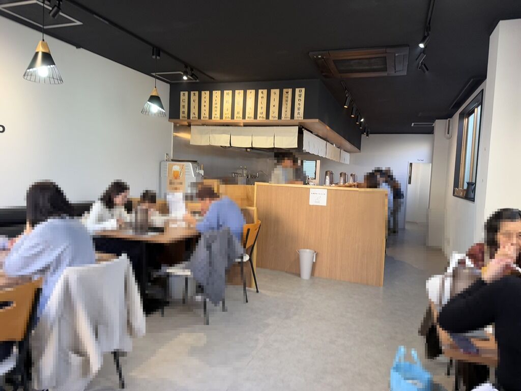 店内は白を基調としたシックでモダンな町中華とはらしからぬセンスあふれるインテリア。席は厨房前に真っ直ぐなカウンター6席、4人卓x2、2人卓x1。