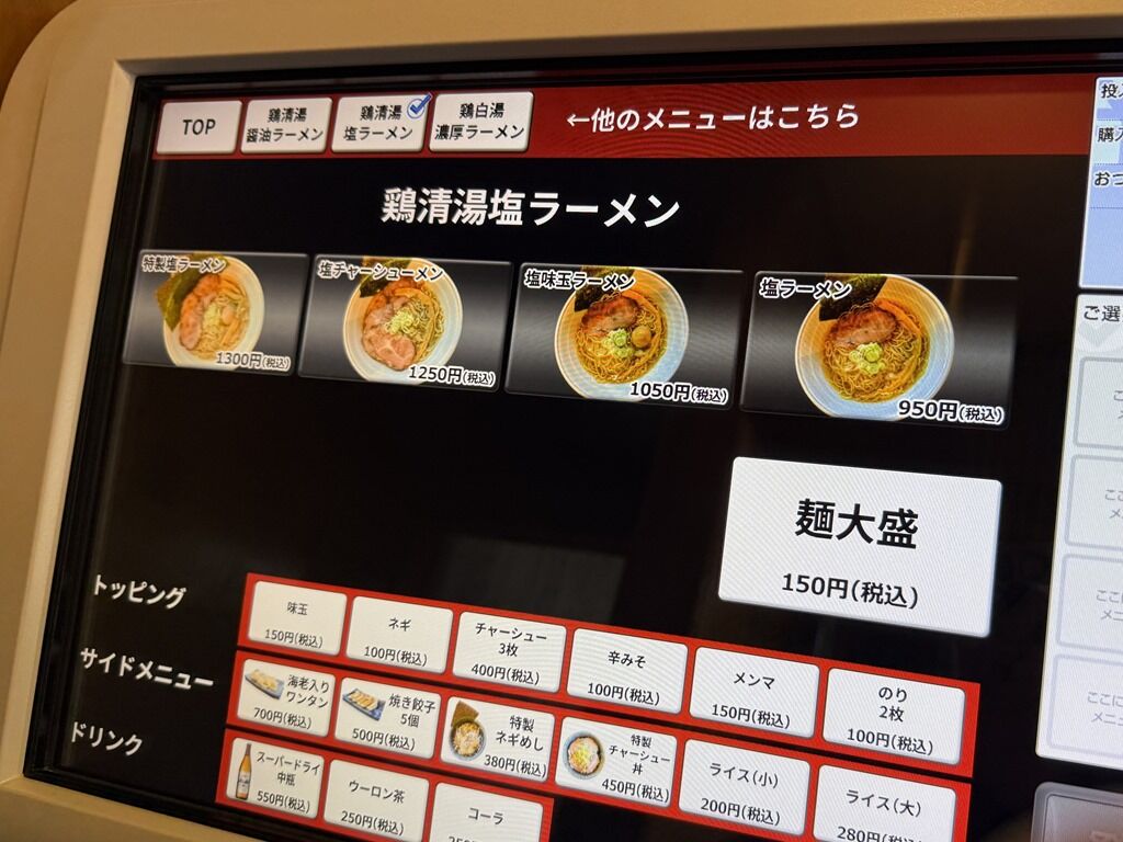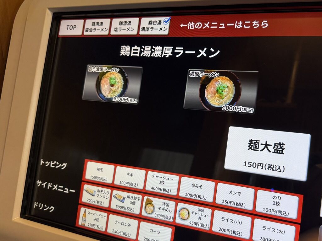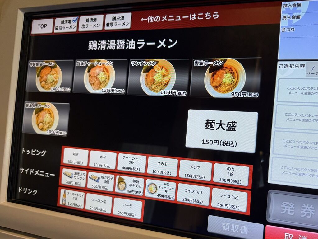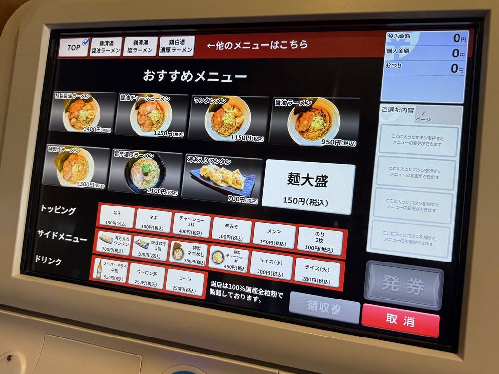 入店するとまず店内最奥にあるタッチパネル式券売機で食券購入です。