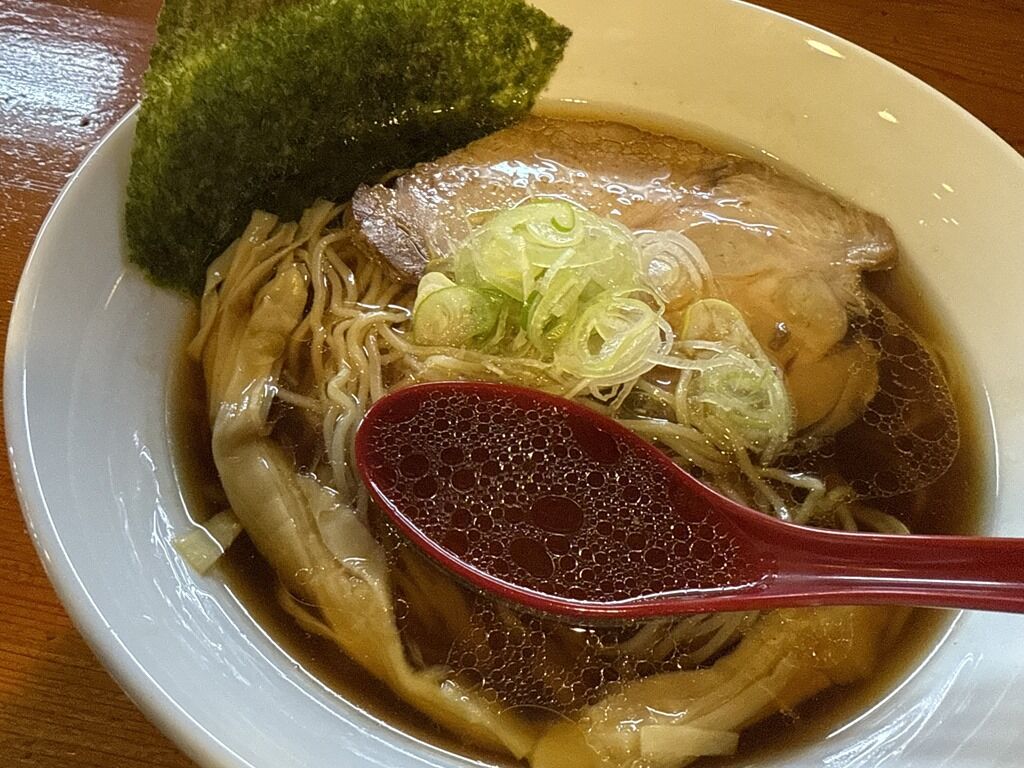 スープはさらさらの無化調清湯醤油味。甘めで鶏の旨みが出た郷愁を誘う懐かしい感じの味わい。老若男女問わず好まれそうな味でとても美味しい!