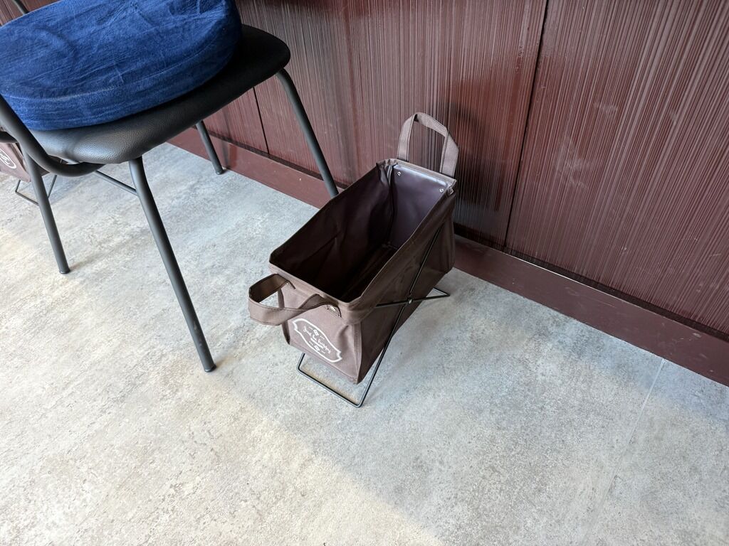 椅子にふかふかのクッションが敷いてあって座り心地グッド。足元に荷物かごの用意あり。