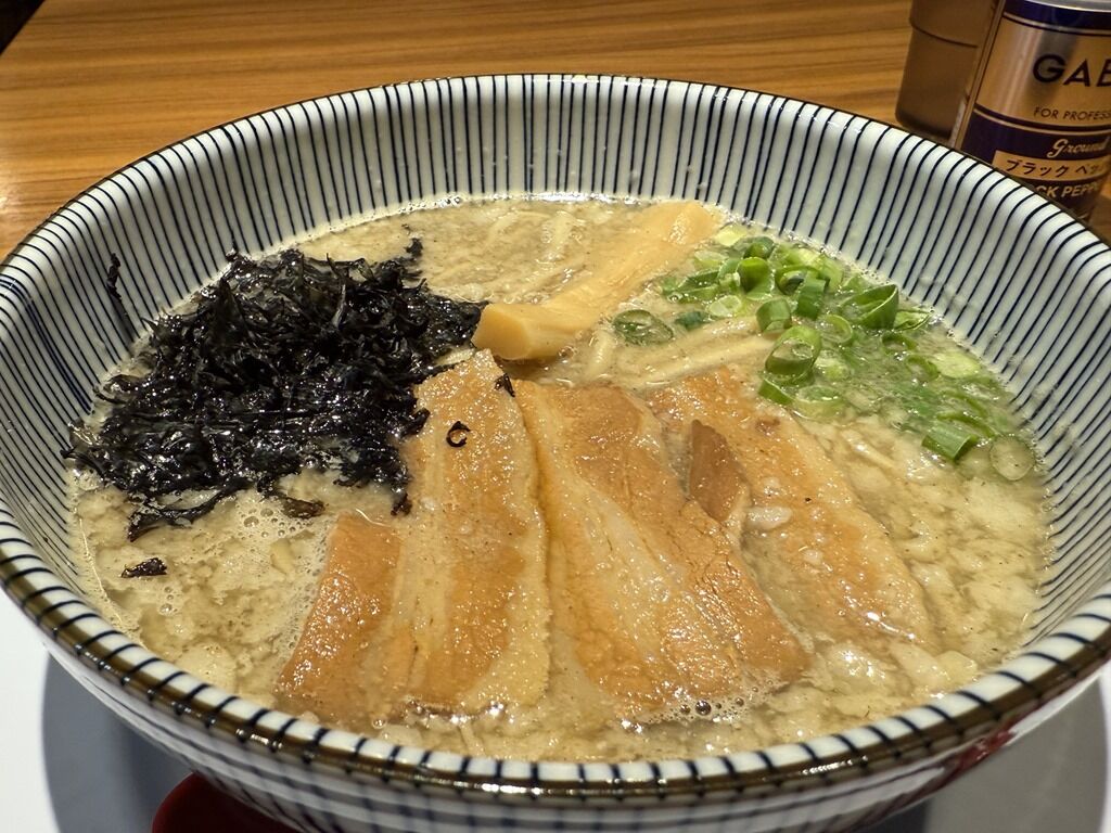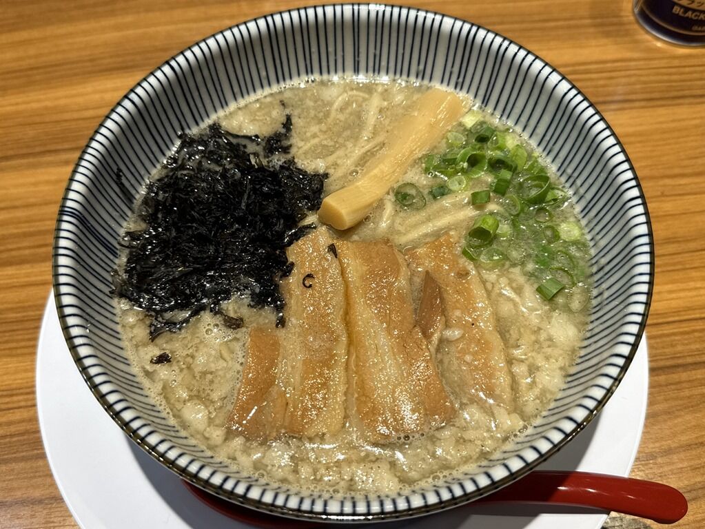 具はバラ三枚肉チャーシュー、極太メンマ、バラ海苔、きざみ青ねぎ。