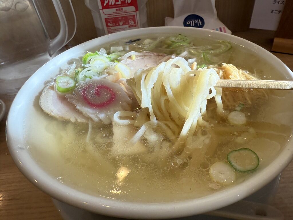 スープはさらさらの清湯塩味。そこまで見通せそうな透明度の高い美しいスープ。鶏ガラ、香味野菜、鰹節などを炊いた出汁。生姜球を溶かすと徐々に生姜がブーストされてきます。公式HPに「“キレ”と“やさしさ”というコントラストから織り成される逸品」とありますが、まさに言い得て妙!どこまでも滋味深くほれぼれする深いコクとうま味があってすごく美味しい!