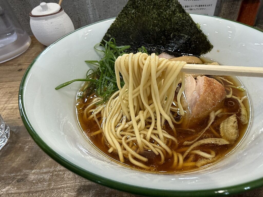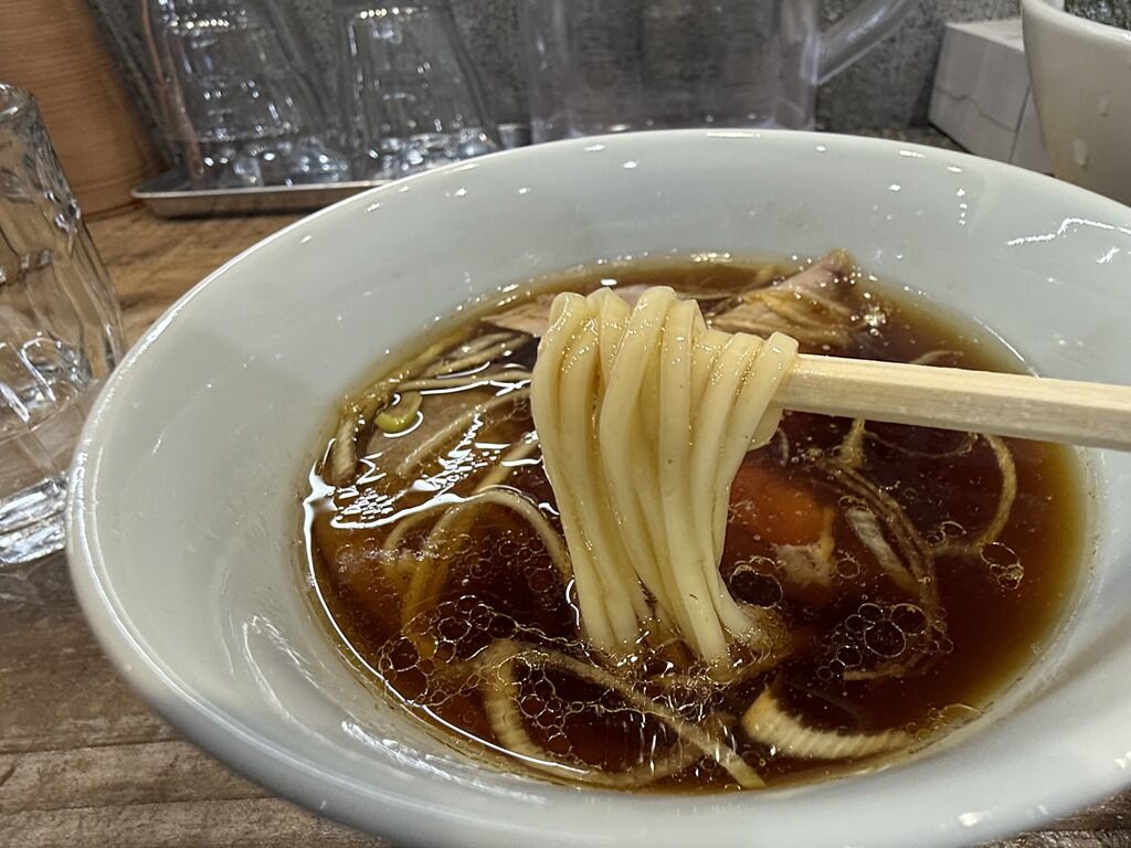 スープはさらさらの清湯醤油味。そばとつけ麺でベースのスープが同じみたいですが、そばは出汁もタレもキリッと立っていて、キレとコクとシャープさと芳醇さが両立した味わい。「つけ麺」はヨコクラテイストですが、「醤油そば」はアメノオトイズムを感じさせるテクスチャー。長い行列も納得の一杯すごい美味しい!