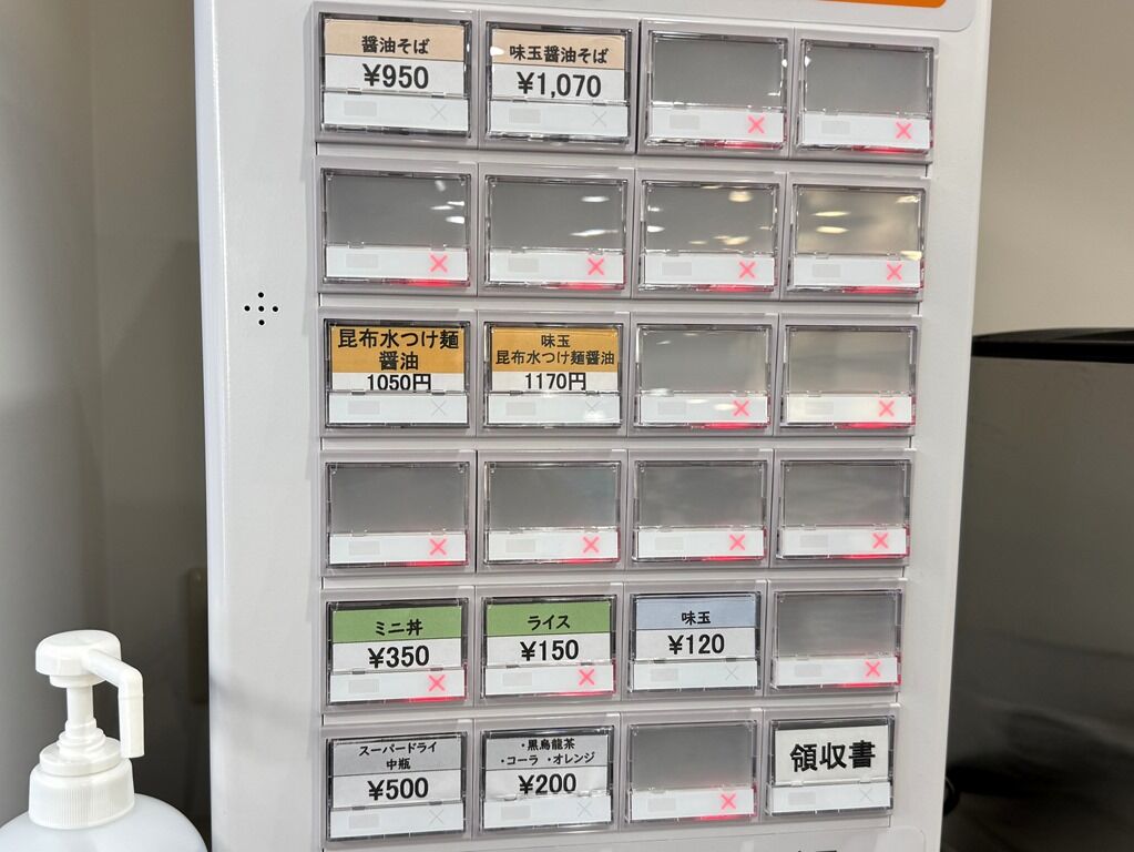 入店するとまず新札・新500円硬貨対応券売機で食券購入です。メニューは、