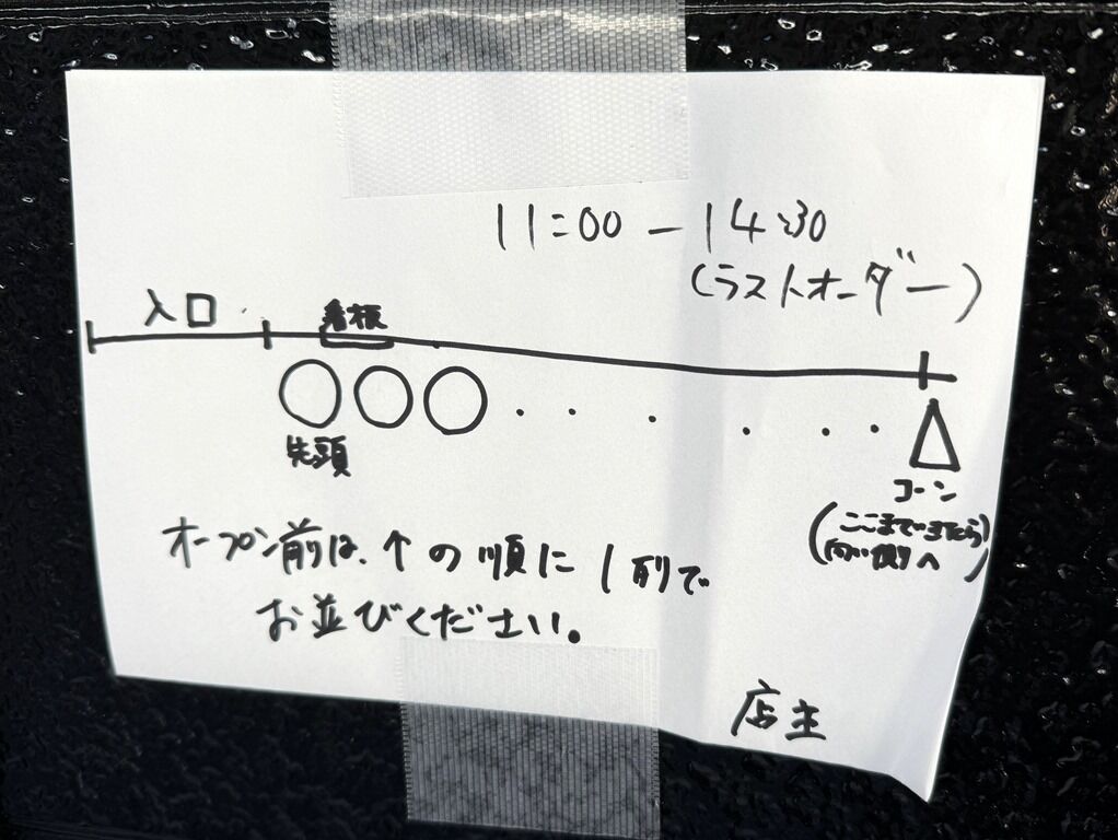 14:30LOですが、14:00頃到着で中待ち6、外待ち23。後客3でこの日終了。