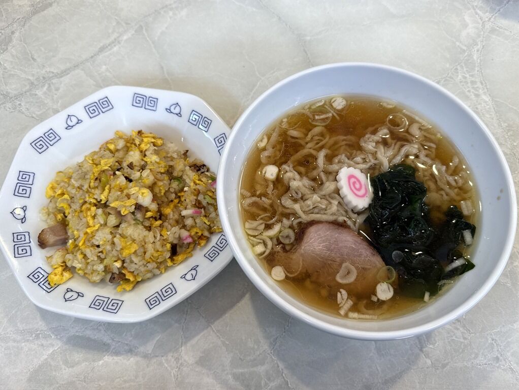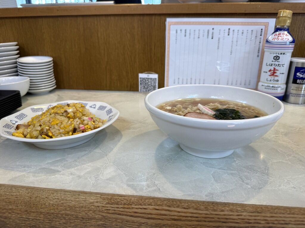 今回は先にチャーハンが、後からラーメンが提供。ロットによっては逆になることも。先にラーメンが来ちゃうと伸びちゃうので食べ始めますが、チャーハンが先だとラーメン来るまで待っちゃいます(今回がこのケース)。