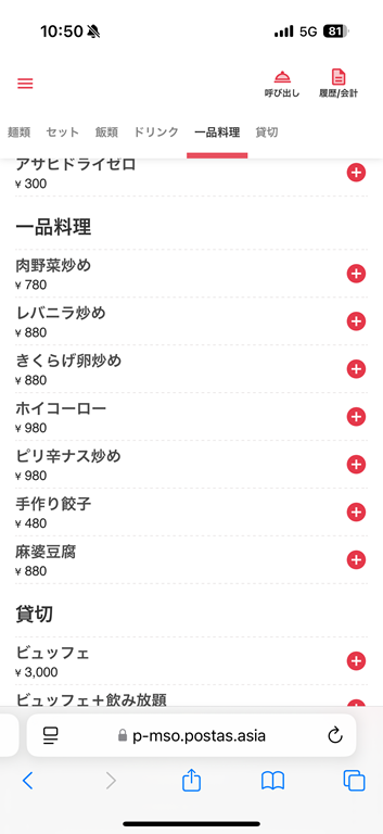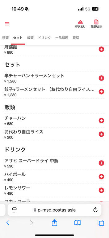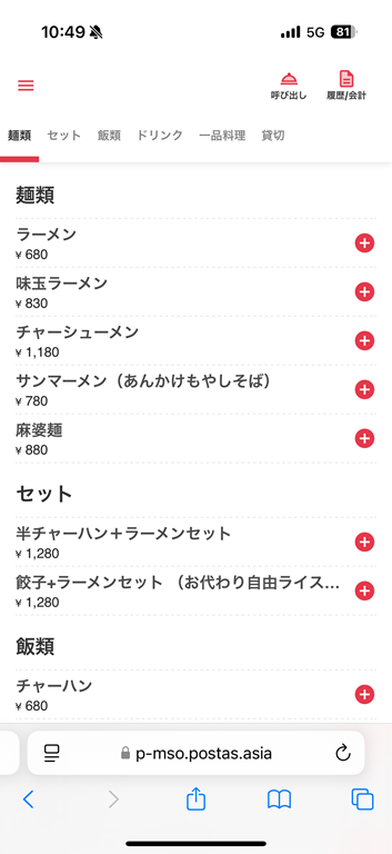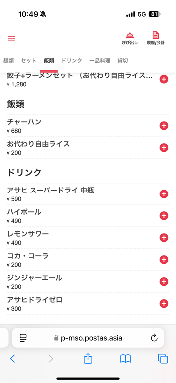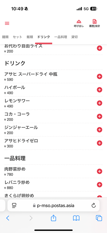 QRコードオーダーですが、伝票方式、食後レジにて後会計制。決済方式は現金及びキャッシュレスが楽天ペイ・auペイの掲示がありました(他方式の対応は不明)。