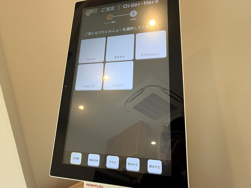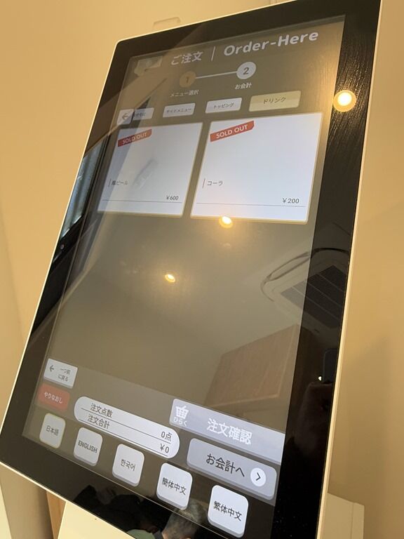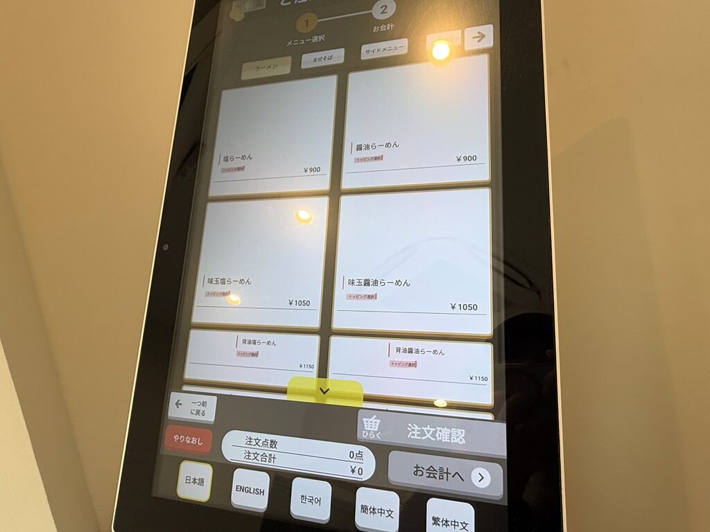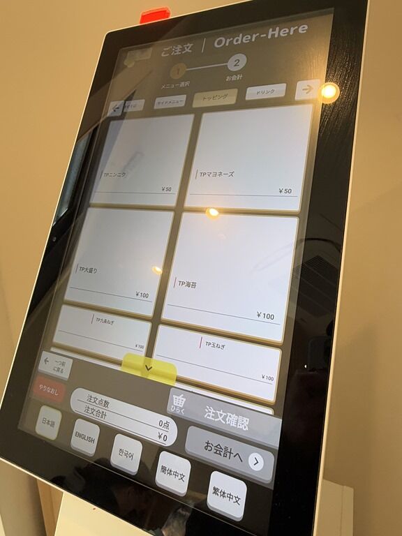 定刻4分前嬉しい早明け。入店するとまずタッチパネル式券売機で食券購入です。