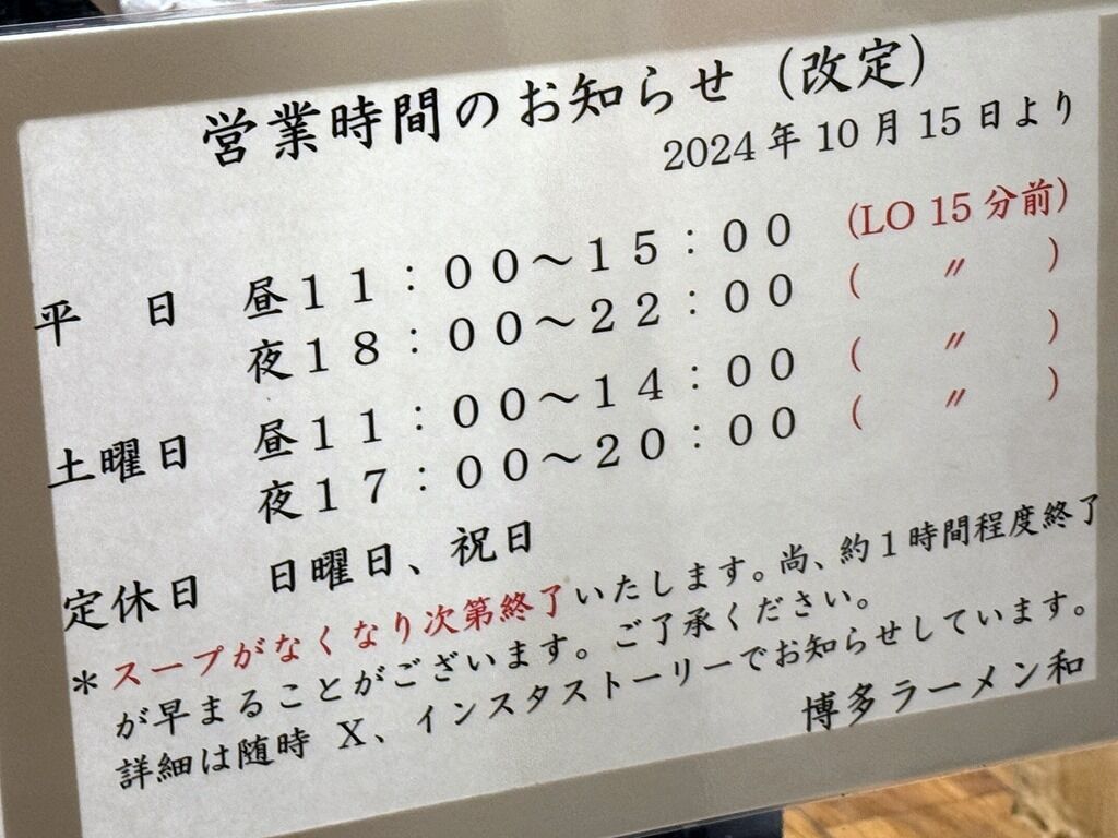 2025年1月8日、赤坂の「博多ラーメン 和」へ。