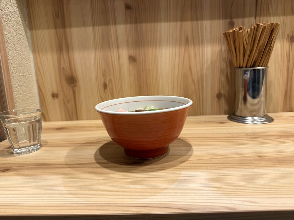 器は中華そばと共通。記事執筆時知ったのですが、自己申告制?辛さが調整できるみたいです。