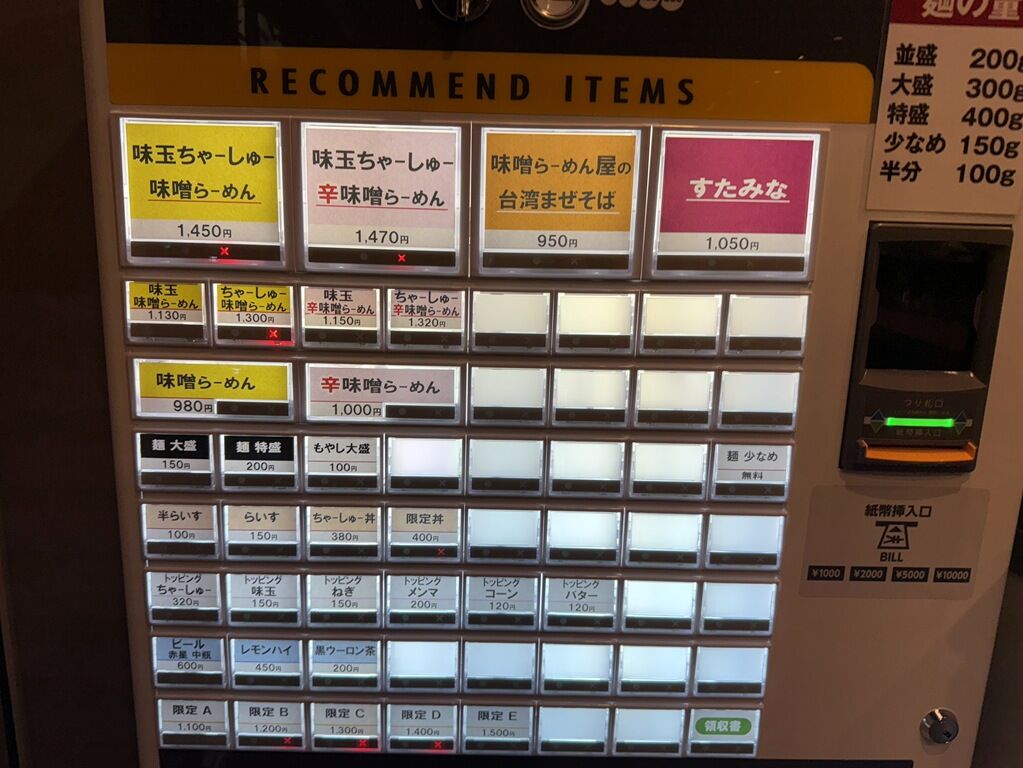 定刻7分前嬉しいフライングオープン。入店するとまず新紙幣・高額紙幣対応券売機で食券購入です。なお、キャッシュレスは非対応。