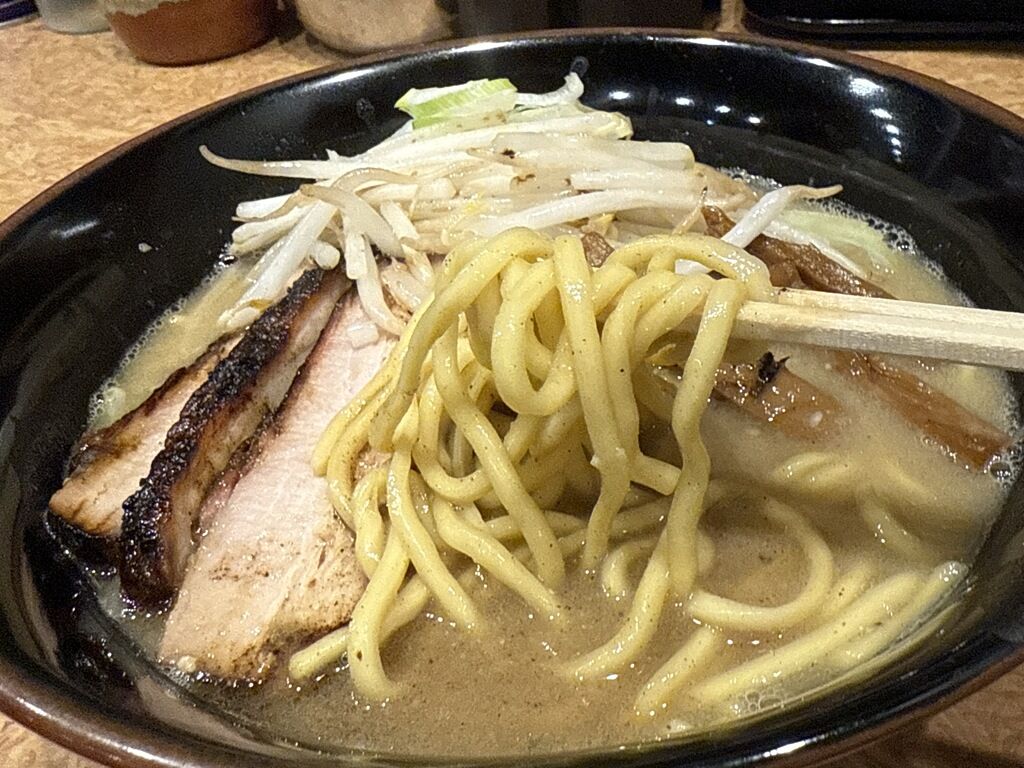 麺は三河屋製麺製のゆるやかにウェーブの付いた太麺。ゆで時間4:30。むっちりもっちりとしたコシと弾力のある食感。激ウマスープとのマッチングも良く、旨さが加速します。