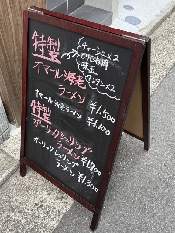 2025年3月10日一粒万倍日・天赦日・寅の日というトリプル吉日にオープン。「オマール海老だけで出汁をとった怪物的うまさのラーメン屋」というお店。「怪物」と言えば自陣的にはアニメ「BEASTARS」とYOASOBIのテーマソング「怪物」。決してアニメ「怪物くん」ほどは古くないです。「家系ラーメン いんなみ家」の後こちらへ。