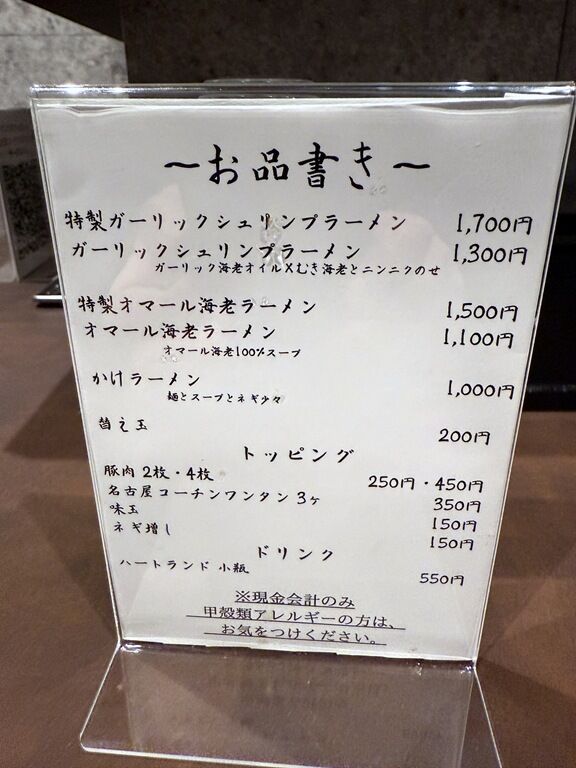ガーリックシュリンプラーメン1300円