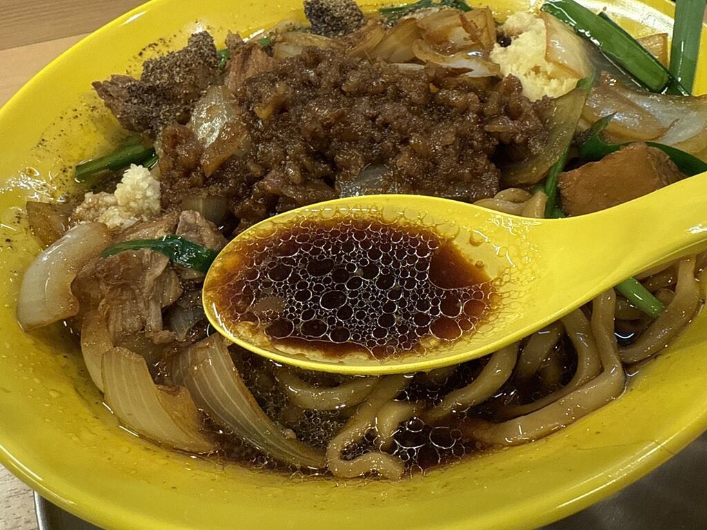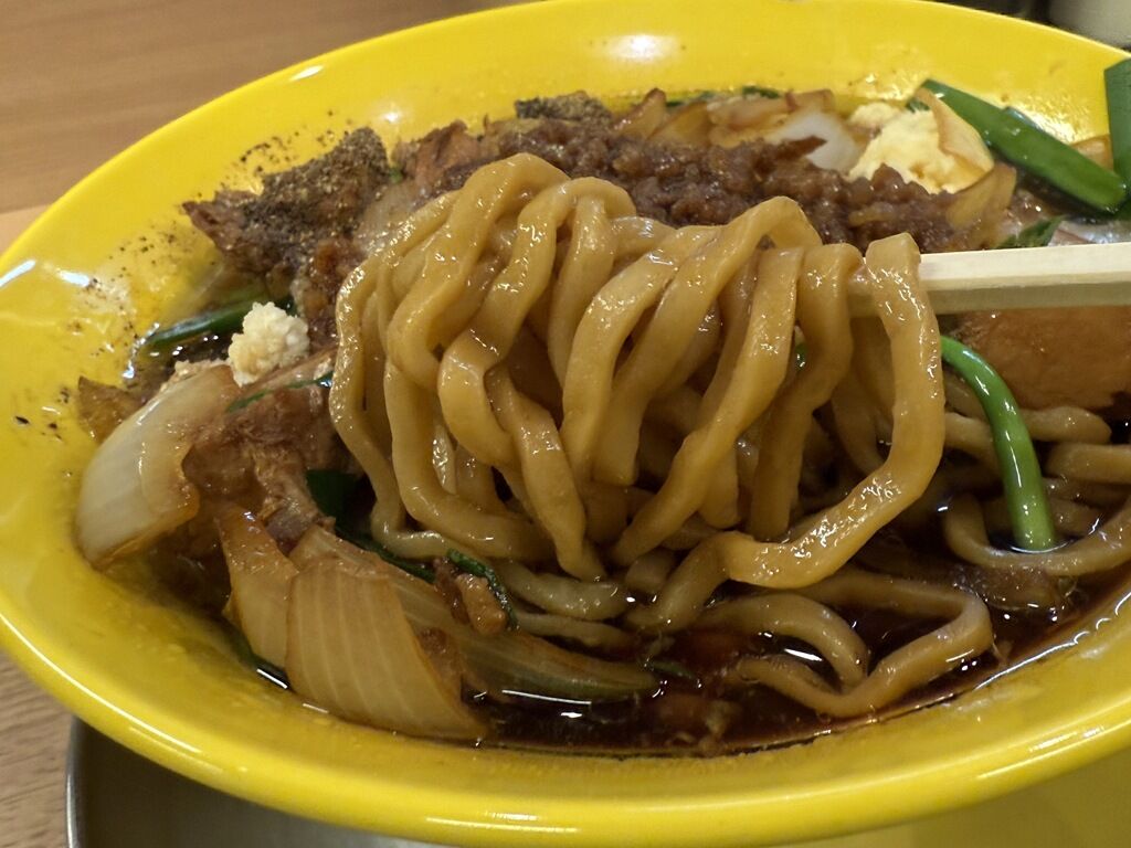 スープはさらさらの清湯醤油味。液状油たっぷりでショッパーウマーな、インパクトの強い癖になるハマるヤミツキ度の高い味わい。旨いものは糖と脂で出来ているとは至言でそれをまさに具現化した一杯。ハイパージャンク&ワイルド&ギルティですがこりゃたまらん悪いヤツでメッチャ美味しい!