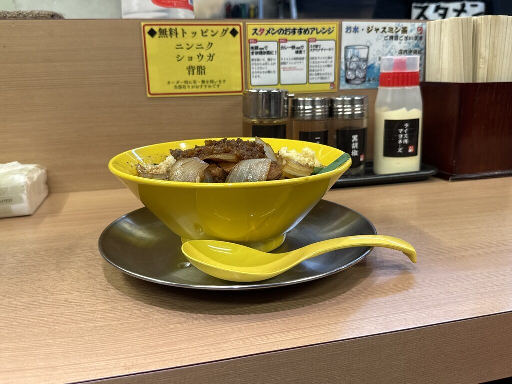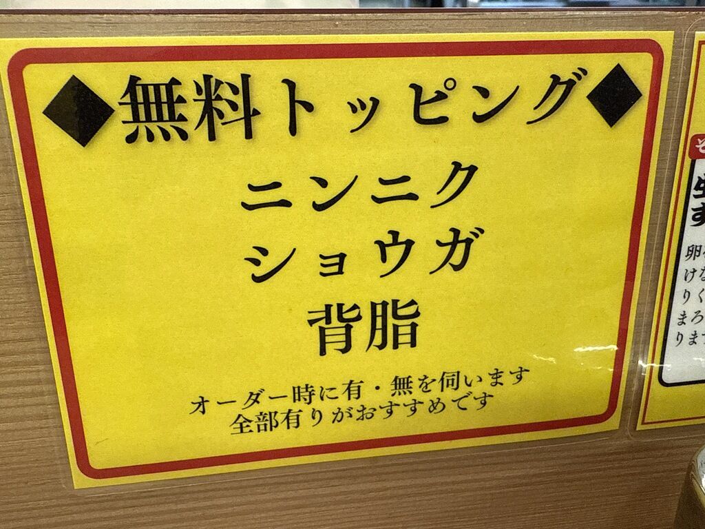 コールのタイミングは食券回収時。全部入りがオススメで、「全部入れていいですか」と聞かれます。