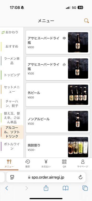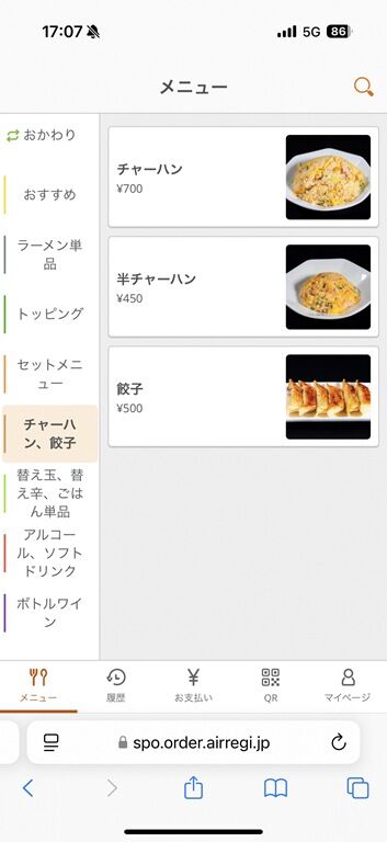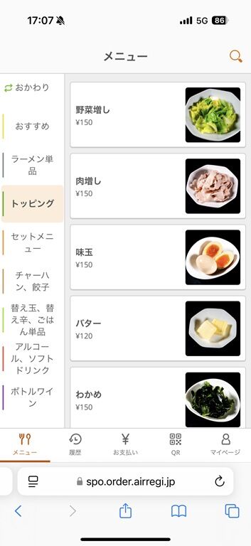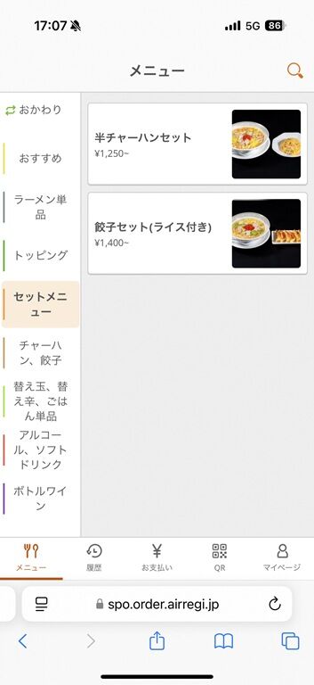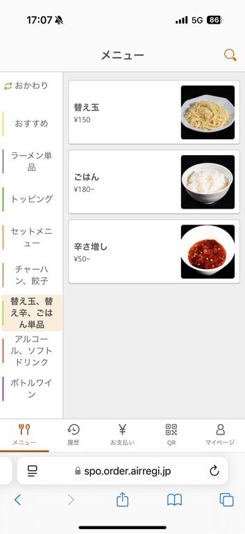 券売機は無くQRコードを読んで注文、食堂レジにて後会計制。決済方式は現金、及び各種キャッシュレスに対応。