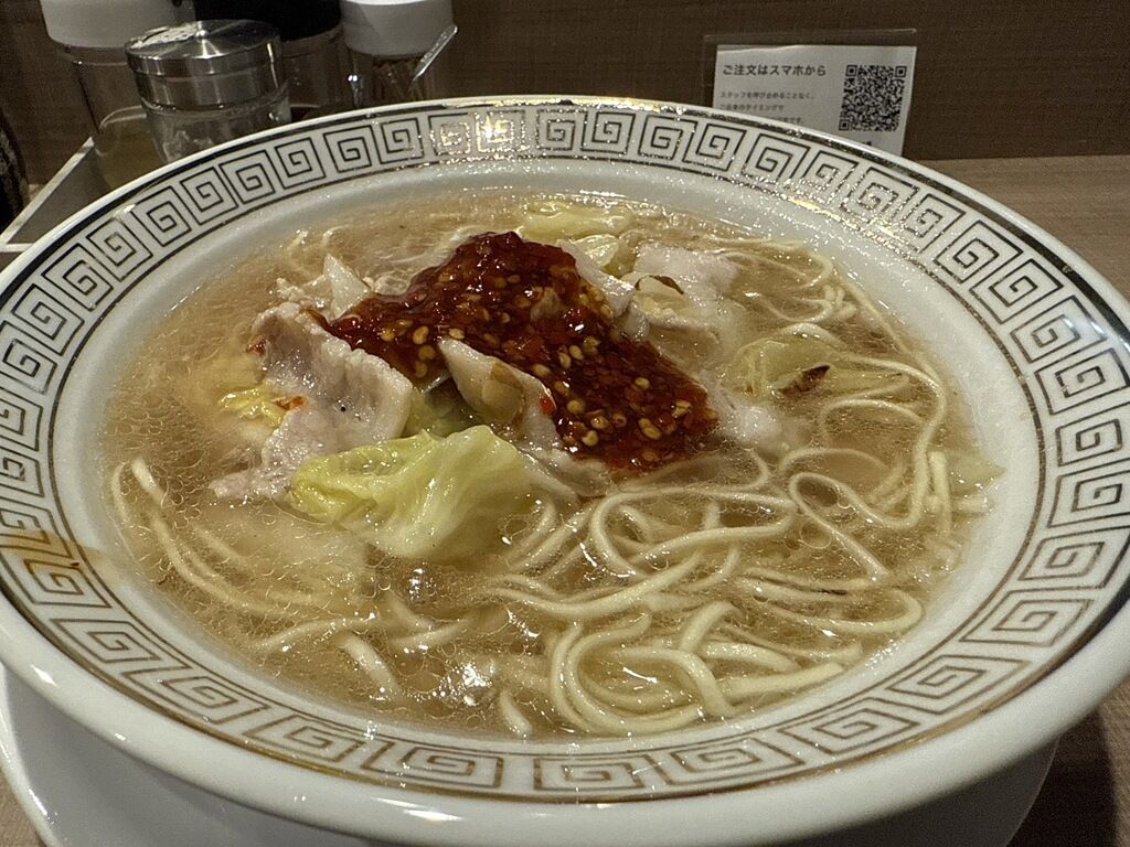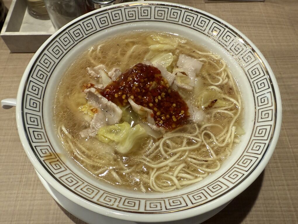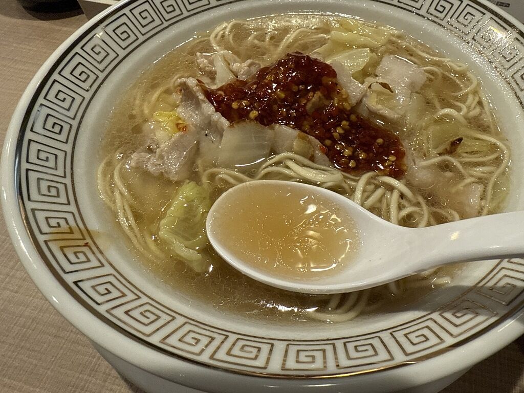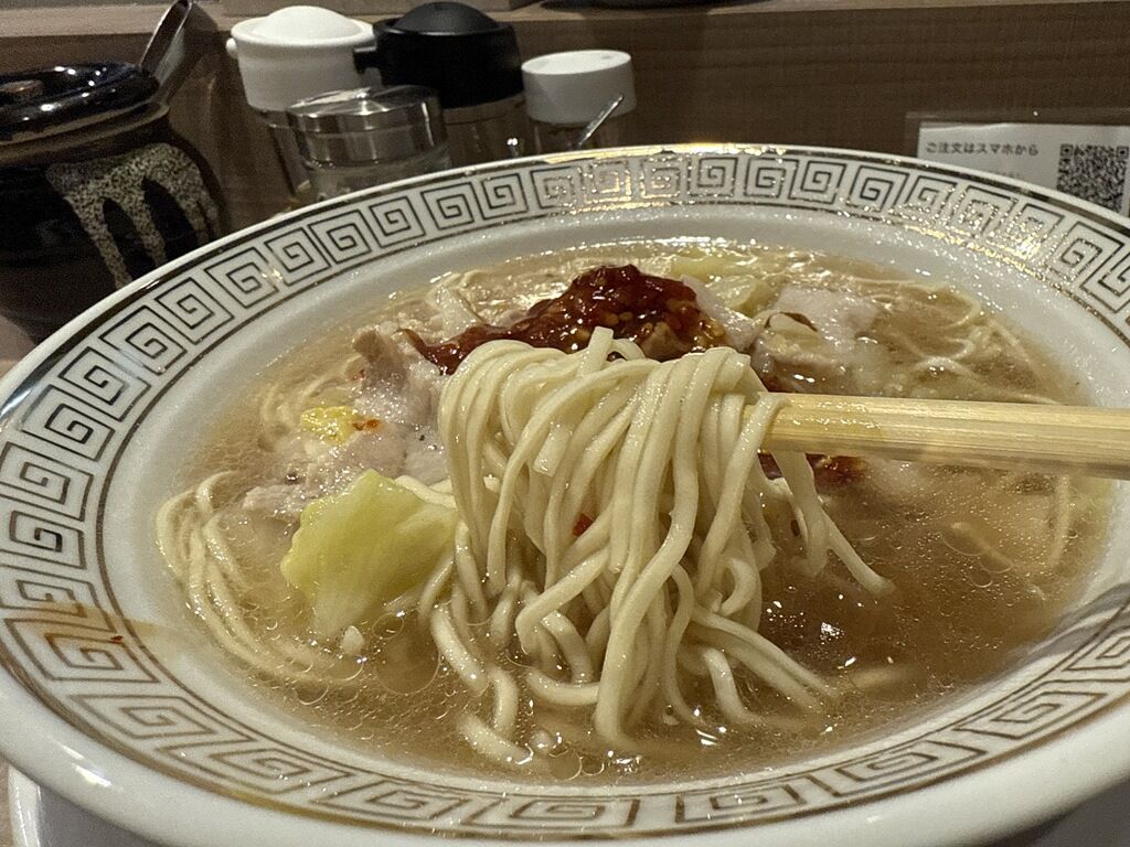 中華鍋で具と炒め煮した透明な塩味スープは、豚肉、白菜、キャベツ、ニンニクの旨みが詰まった塩味スープ。肉と野菜から出るエキス、うま調も効いてるかな!?猛烈な旨味の奔流に。(町中華っぽくていい感じです)。3辛は程よいピリ辛具合で、辛党なら4〜5辛でもいいかも。シンプルながらハマる要素満載でとても美味しい!