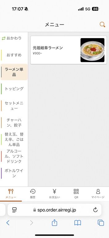 元祖岐阜ラーメンは辛さを0辛〜5辛の6段階から指定。