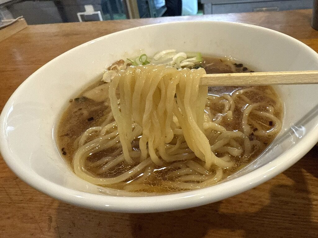 麺は中細で軽く縮れのついたタイプ。麺の柔らかな食感は町中華っぽくもあり、ホッとする旨さ。