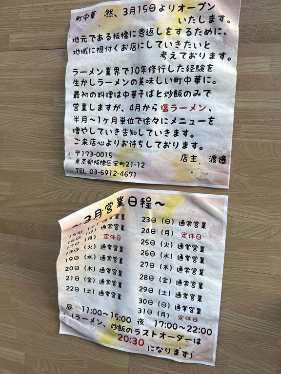 2025年3月15日大安にオープン。ラーメン業界で10年修行した店主さん。食べログデイルス・マイビスさんによると、「麺屋 翔」「麺処 ほん田」出身とか。ですが修行先とは趣向を変えて、屋号の通り町中華志向のお店を開業。