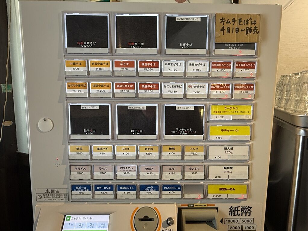 入店するとまず高額紙幣対応券売機で食券購入です。