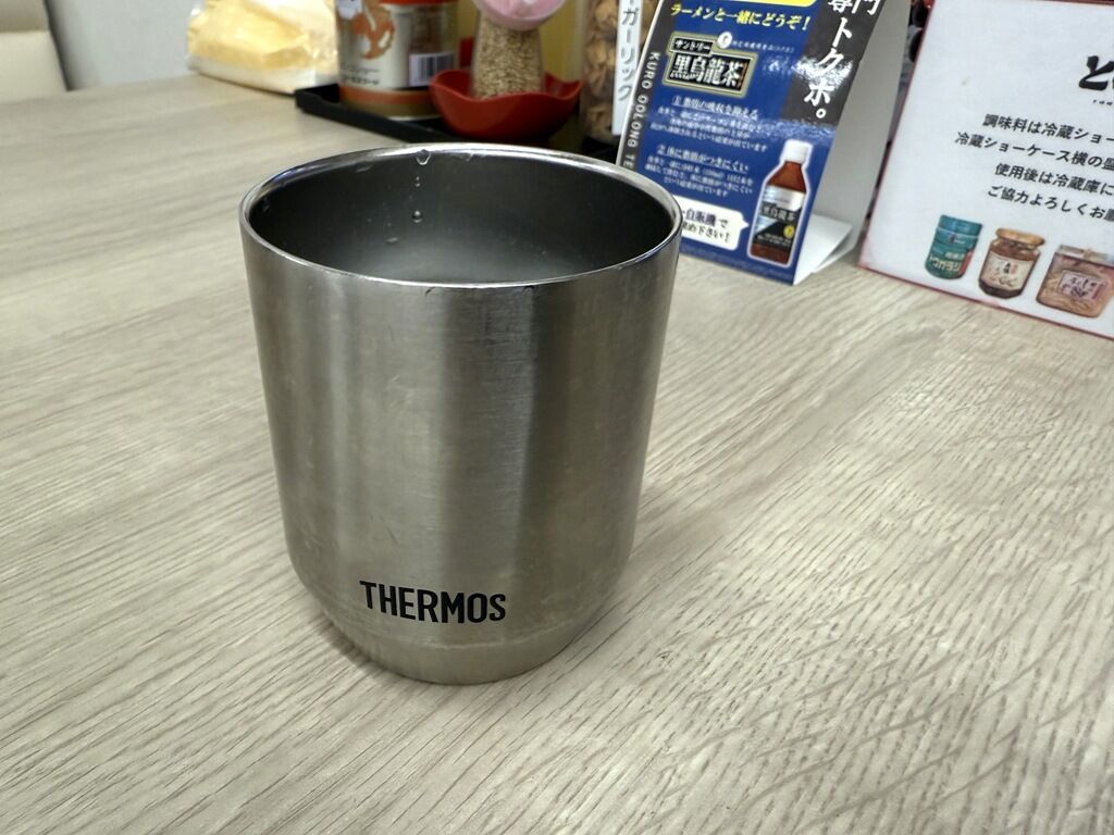 女性店長さんの接客が親切丁寧で子連れファミリーにも優しい異色の家系に。お冷やのグラスはサーモスの保冷タンブラー。