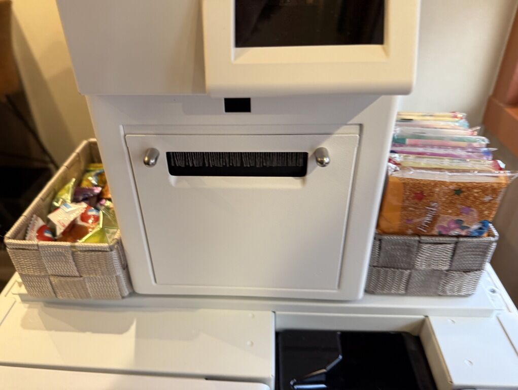 券売機左にサービスの飴、右にポケットティッシュ。