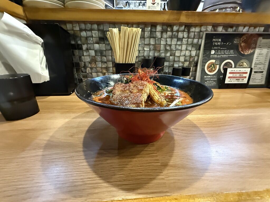 そして待つことしばし「四川風辛味噌ラーメン(辛増しシビ増し)」完成で〜す♪
